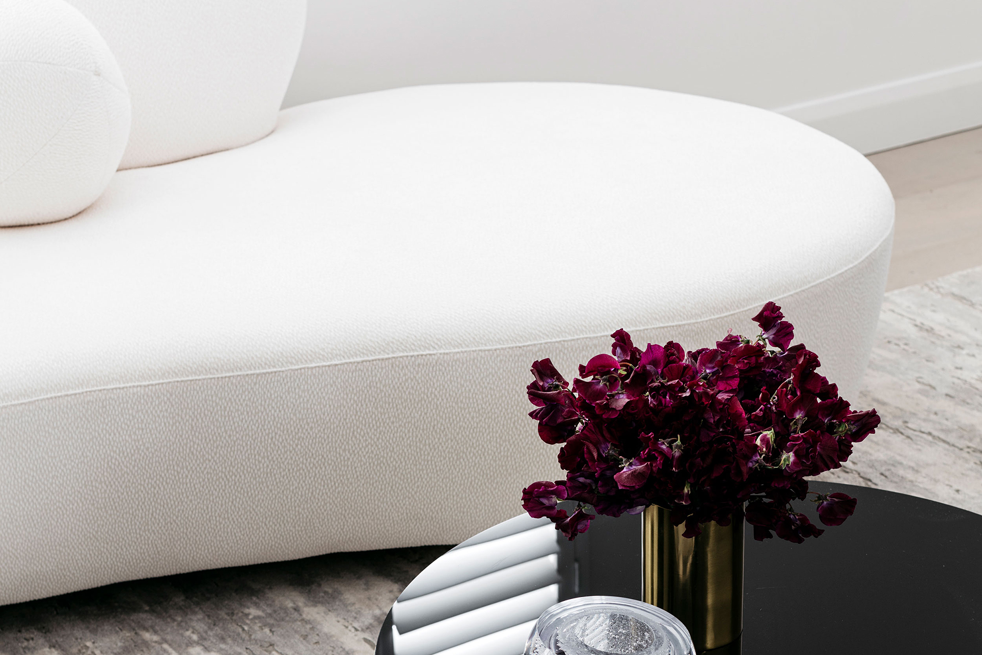 LOCATED…just 7 Kilometers east of Sydney’s central business district in the harbor-side suburb of Rose Bay, lies one of Maya’s most recent interiors – a residence that balances city sleek with the perfect dose of coastal detail. Upon entry to the main living room guests are met with a wall of plantation shutters filtering the Australian light and providing a beachy yet tailored touch. As for furnishings, Maya selected an eclectic range from Vladimir Kagan’s mid-century sofa to Patricia Urquiola’s contemporary lounge chairs to Victoria Wilmotte’s futuristic Pli side table.